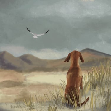 Having a pet illustration is a beautiful way to remember your special animal friend who is no longer with you. This bespoke illustration captures their happy place where they peacefully wait for you over the rainbow bridge. 🌈